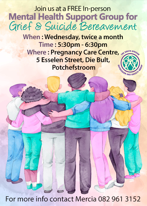 SADAG has over 180 free Support Groups. To find out more about joining or starting a Support Group click here.