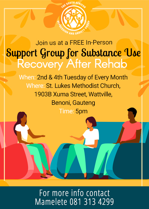 SADAG has over 180 free Support Groups. To find out more about joining or starting a Support Group click here.